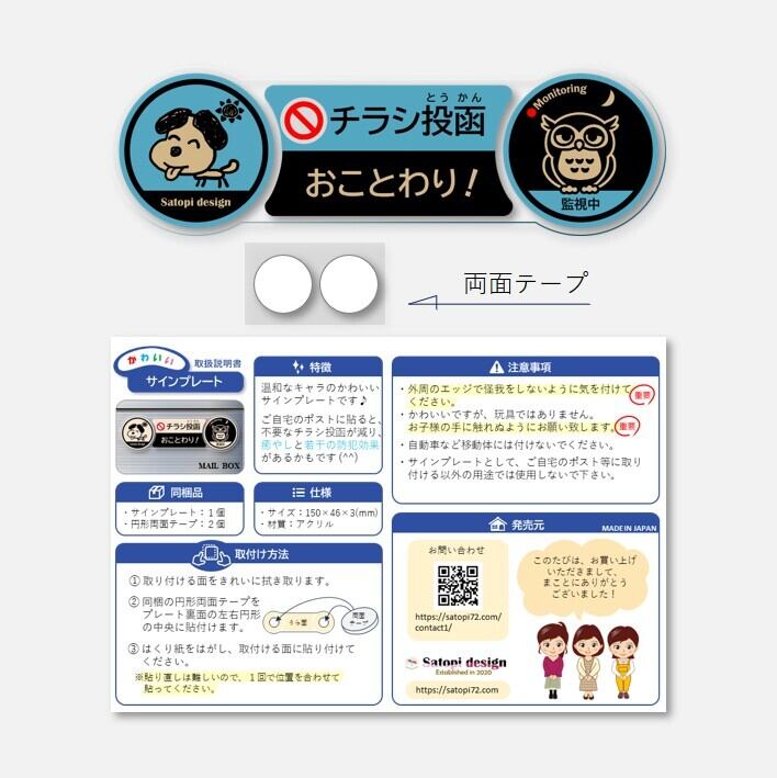 ご自宅の郵便受けに貼ると、不要なチラシ投函が減り、癒やしと若干の防犯効果があるかもです。